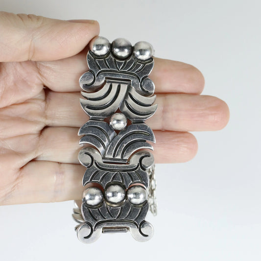 Vintage Hector Aguilar Jewelry | Ball and Bar Panel Bracelet 940 Mexico
