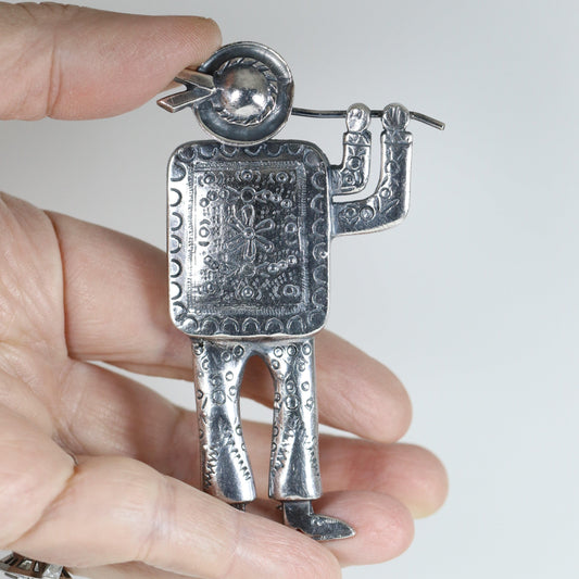 Vintage handgefertigter Silberschmuck | Nachlassbrosche für Flötenspieler