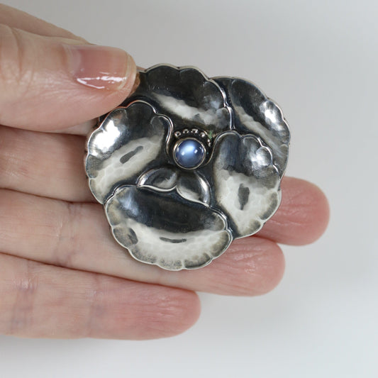 SOLD OUT: Vintage Georg Jensen Jewelry | Moonstone Pansy Brooch 113