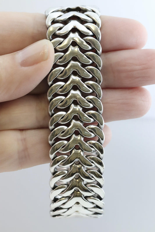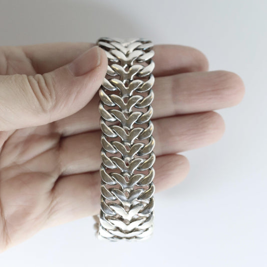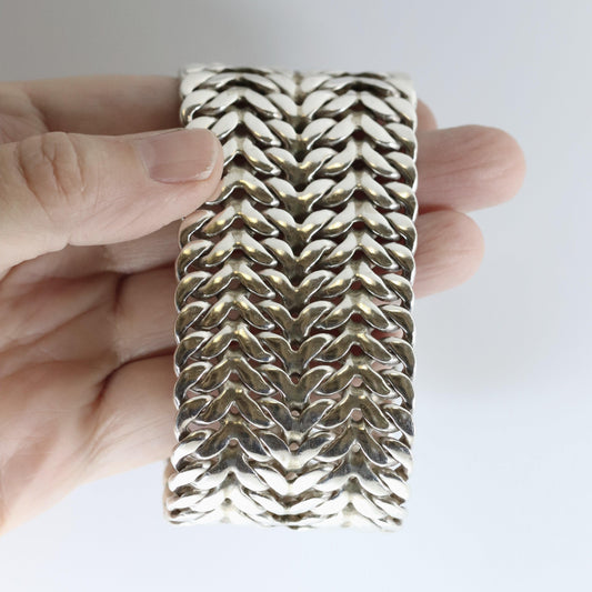 Vintage Rodolfo Espinoza Taxco Silber Mexikanischer Schmuck | Breites Mid-Century-Doppelpanzerarmband