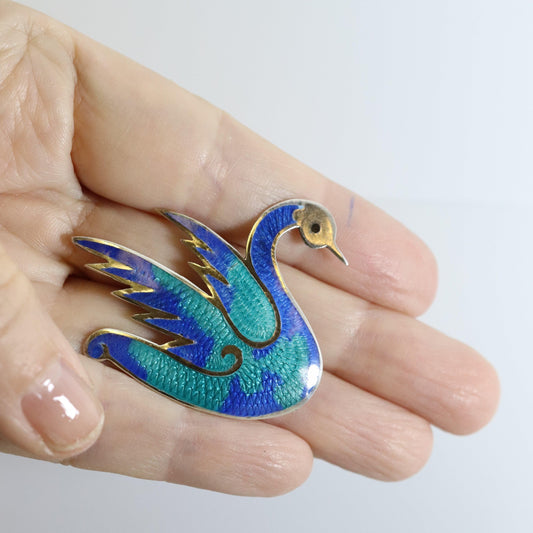Vintage Taxco Silber Mexikanischer Schmuck | Jeronimo Fuentes Emaille-Schwanenbrosche