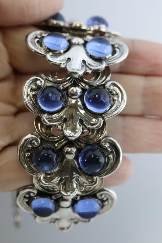 Vintage Margot de Taxco Silber mexikanischer Schmuck | Blaues Blumenarmband aus Glas 5513