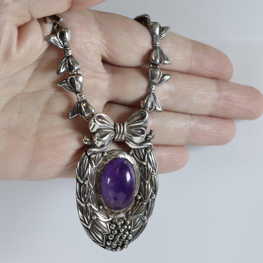 Vintage Margot de Taxco Silber mexikanischer Schmuck | Amethyst-Nachlass-Halskette aus der Mitte des Jahrhunderts