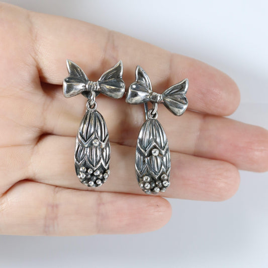 Vintage Margot de Taxco Silber mexikanischer Schmuck | Mid-Century-Ohrringe mit Schleife und Beeren