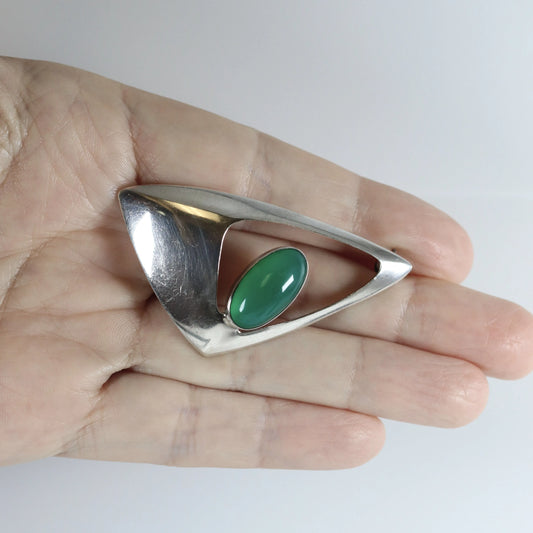 Foto – Vintage NE von Sterling Silber Schmuck | Chrysopras-Brosche im Modernismus, Dänemark
