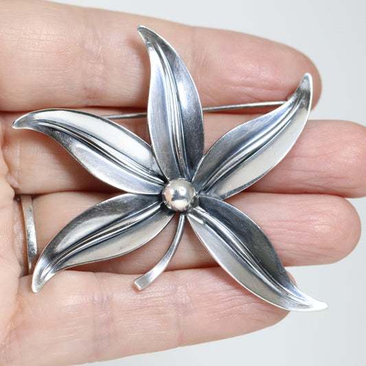 Vintage NE aus Sterling Silber Schmuck | Auffällige Blumenbrosche Dänemark