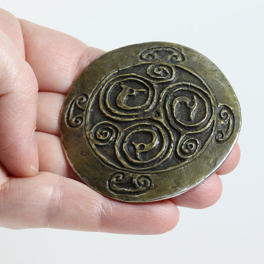 Vintage Peggy Yunque Schmuck | Griechische Revival-Brosche aus Bronze oder Messing