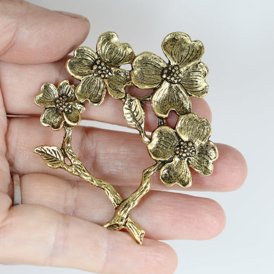 Vintage Peggy Yunque Schmuck | Goldfarbene Dogwood-Blumenbrosche