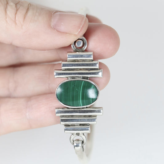 Vintage Taxco Silber Mexikanischer Schmuck | Modernistisches Malachit-Armband