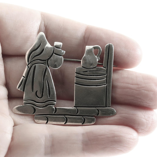 Vintage Taxco Silber Mexikanischer Schmuck | Maricela Traditionelle Brosche mit Frau und Krug