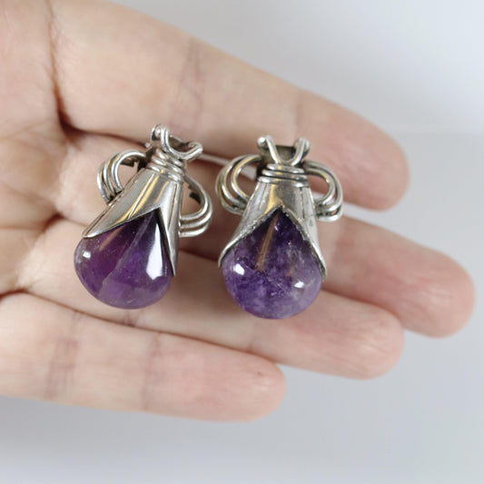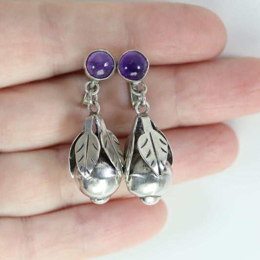 SOLD OUT: Vintage Silver Mexican Jewelry | Early Amethyst Handcrafted Earrings