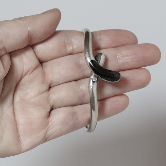 SOLD OUT: Vintage Sigi Pineda Jewelry | Obsidian Modernist Hinged Bracelet Mexico