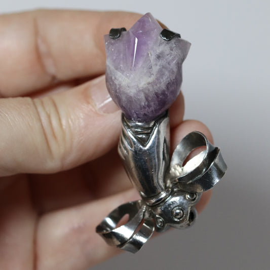 SOLD OUT: Vintage William Spratling Jewelry | Amethyst Hand Brooch Taxco Mexico