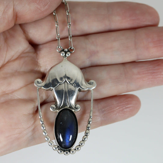 Georg Jensen Schmuck | Labradorit Jugendstil Silber Vintage Halskette Anhänger 42