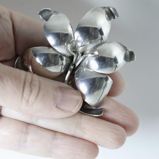 Vintage dänischer E Dagsted Sterling Silber Schmuck | Florale modernistische Mid-Century-Brosche