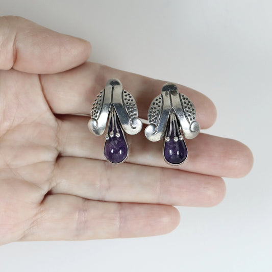 SOLD OUT: Vintage Mexican Jewelry | Tribal Amethyst Earrings Sterling Silver Pre-Eagle Mark