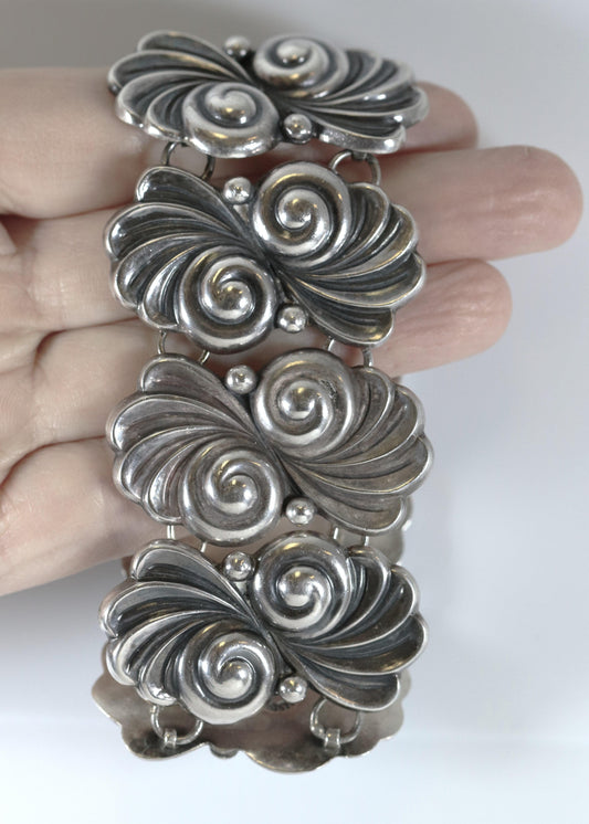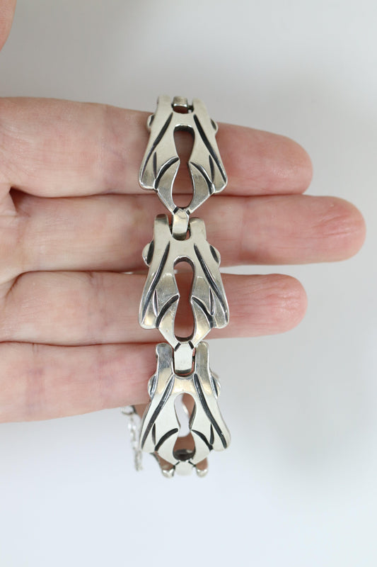 SOLD OUT: Vintage Taxco Silver Jewelry | J. Flores Foliate Panel Bracelet