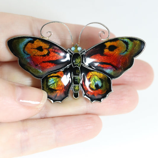 Vintage Silber David Andersen Schmuck | Große mehrfarbige Schmetterlingsbrosche