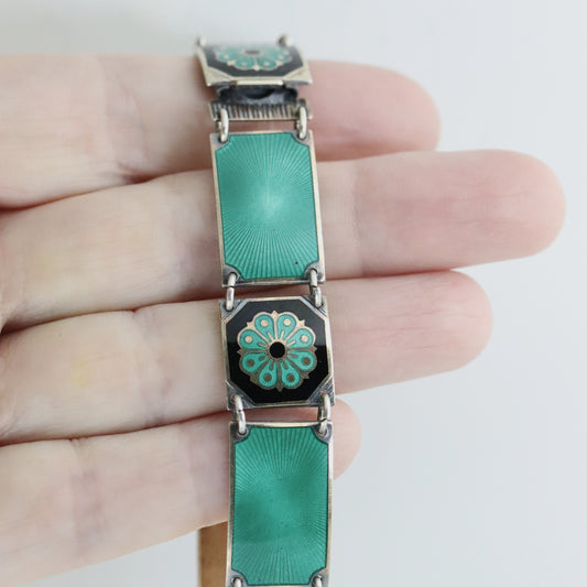 SOLD OUT: Vintage David Andersen Jewelry | Green Guilloché Enamel Link Bracelet Norway