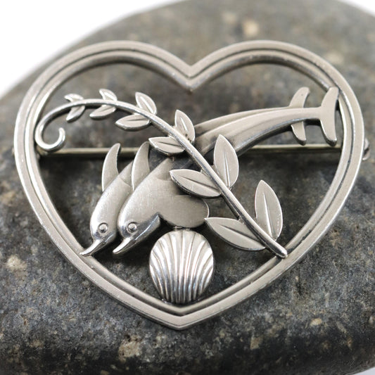 SOLD OUT: Vintage Georg Jensen Jewelry | Heart and Dolphin Brooch 312