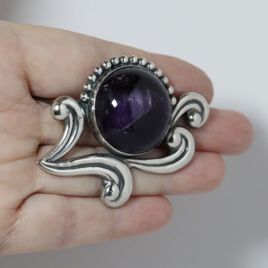 SOLD OUT: Vintage Margot de Taxco Mexican Jewelry | Amethyst Swirl Modernist Brooch