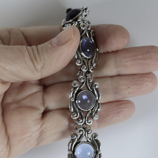 SOLD OUT: Vintage Los Castillo Taxco Mexican Jewelry | Ornate Blue Glass Bracelet