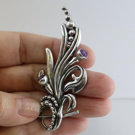 SOLD OUT: Vintage Margot de Taxco Mexican Jewelry | Ornate Amethyst Floral Brooch