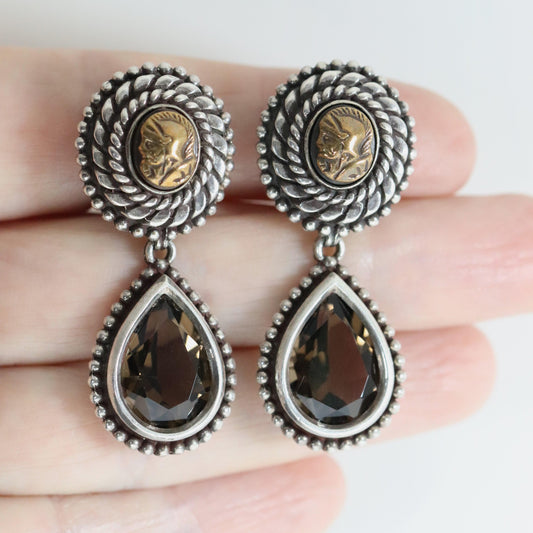SOLD OUT: Vintage Stephen Dweck Jewelry | Bronze Warrior Smoky Quartz Earrings