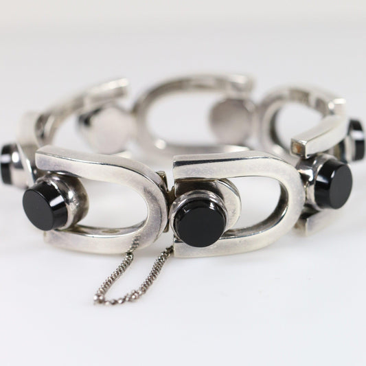 Antonio Pineda Armband | Taxco Mid-Century Modernist Horseshoe-Link Onyx | Vintage 970 Sterling Silber Mexiko