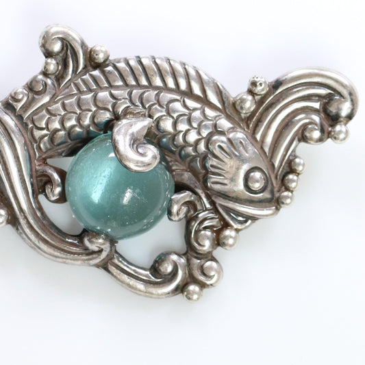 SOLD OUT: Vintage Los Castillo Taxco Mexican Jewelry | Blue Glass Fish in the Sea Brooch