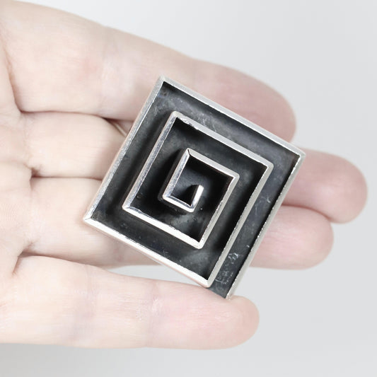 Vintage Maricela Taxco Silber Mexikanischer Schmuck | Geometrische Labyrinth-Brosche oder Anhänger