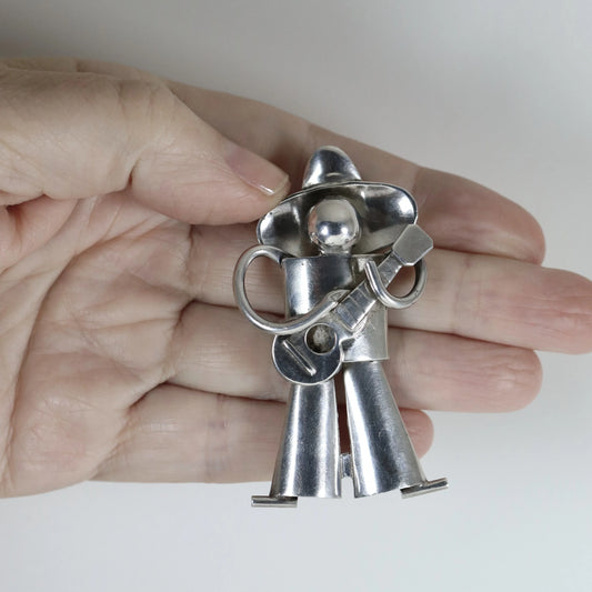 Vintage Fred Davis Jewelry | Guitar Player Brooch in Sterling Silver c.1930 Mexico