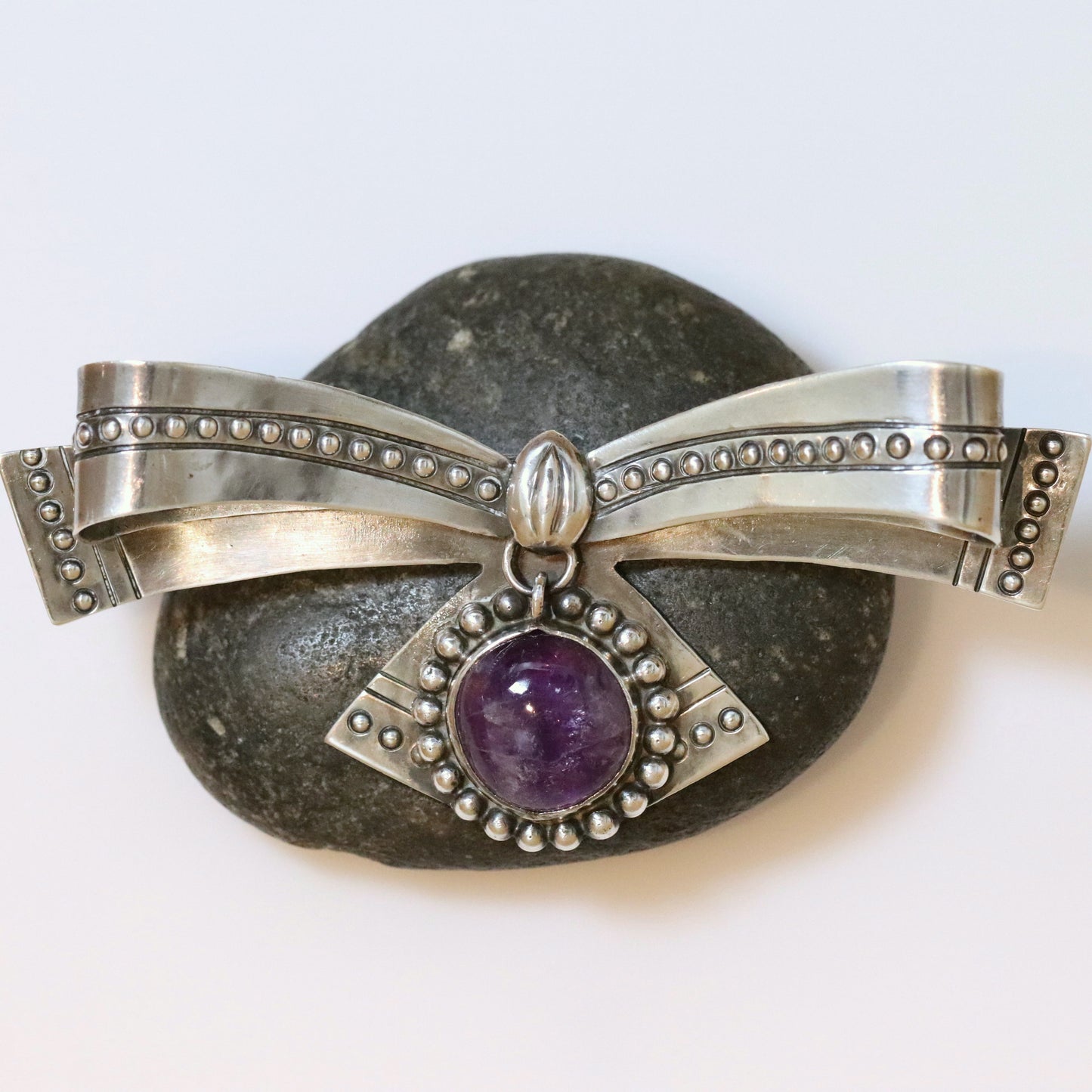 SOLD OUT: Vintage William Spratling Jewelry | Large Amethyst Bow Brooch Mexico